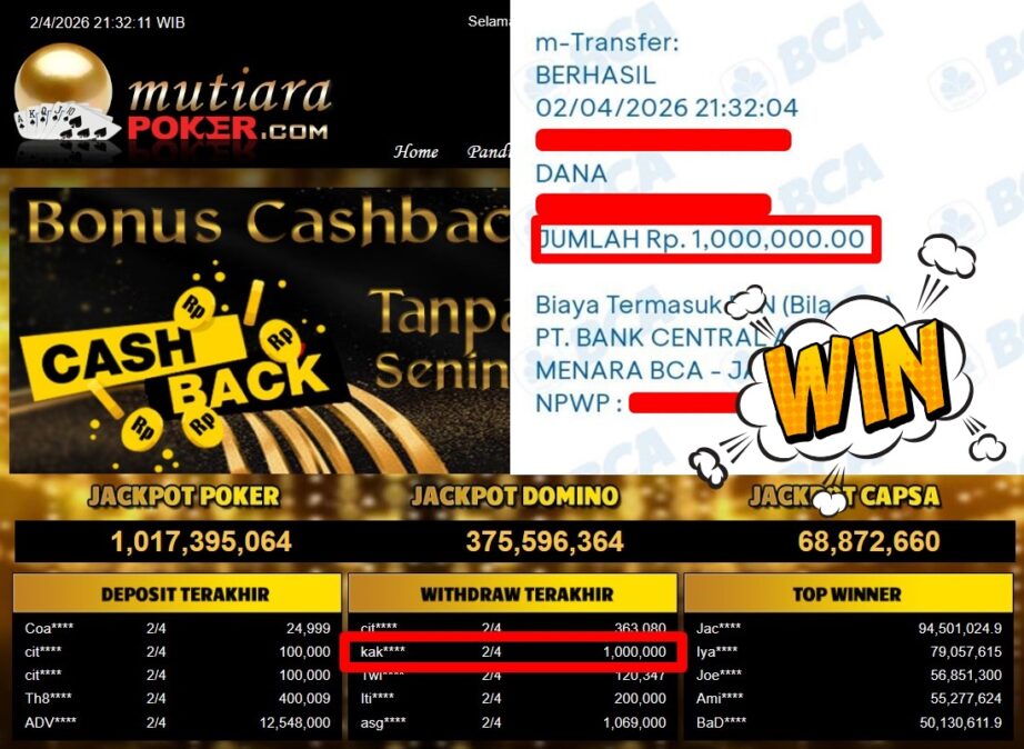 Bukti Withdraw MutiaraPoker