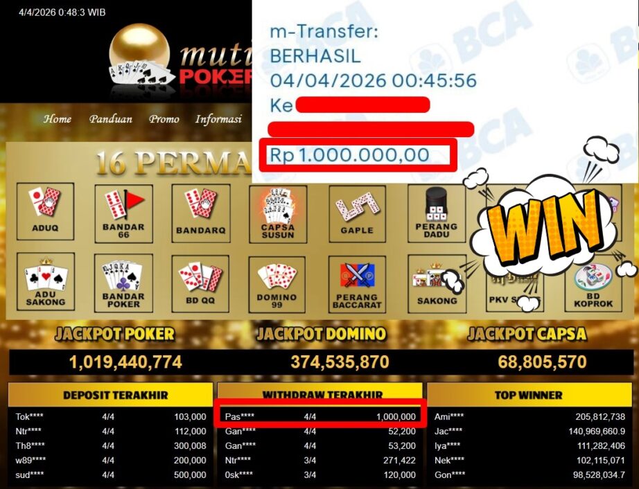 Bukti Withdraw MutiaraPoker