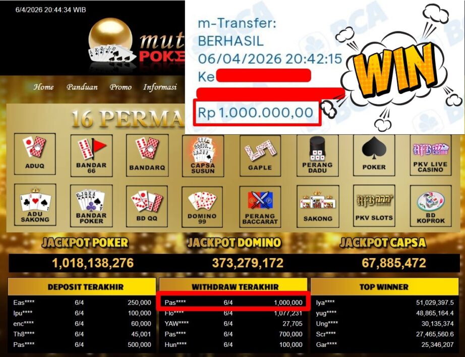 Bukti Withdraw ( 1.000.000,-) Member Setia MutiaraPoker