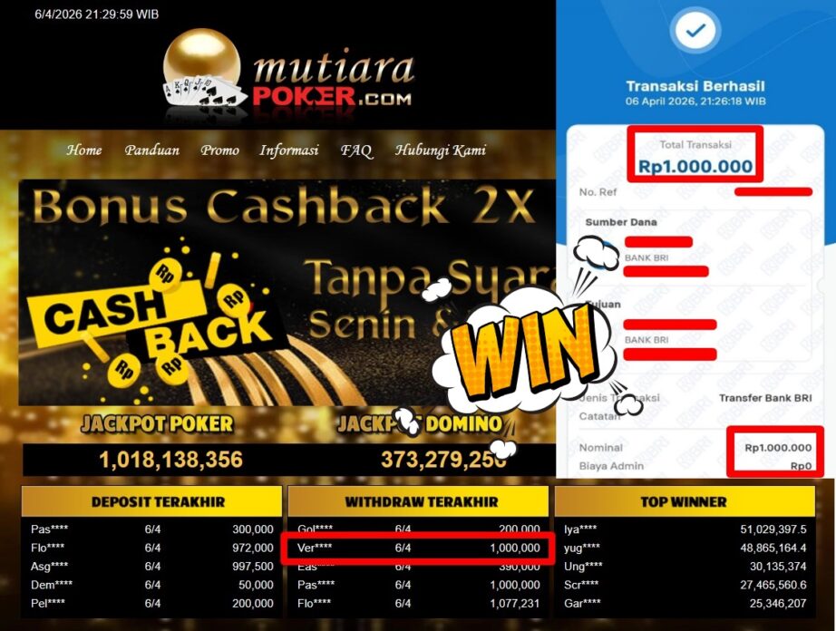 • Bukti Withdraw ( 1.000.000,-) Member Setia MutiaraPoker