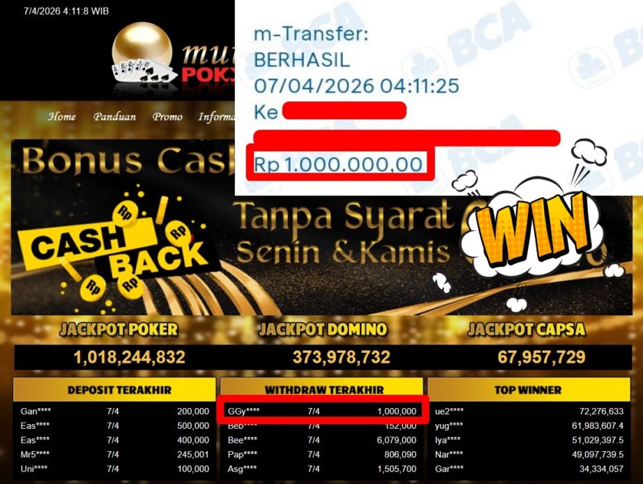 Bukti Withdraw MutiaraPoker