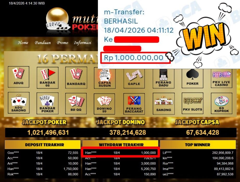 Bukti Withdraw MutiaraPoker