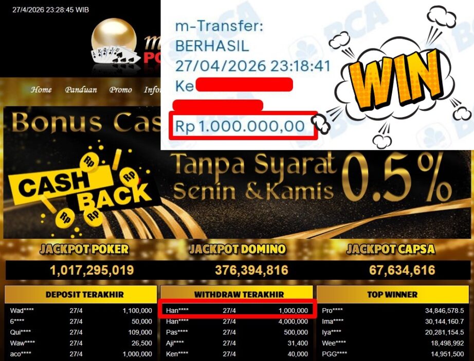 Bukti Withdraw MutiaraPoker