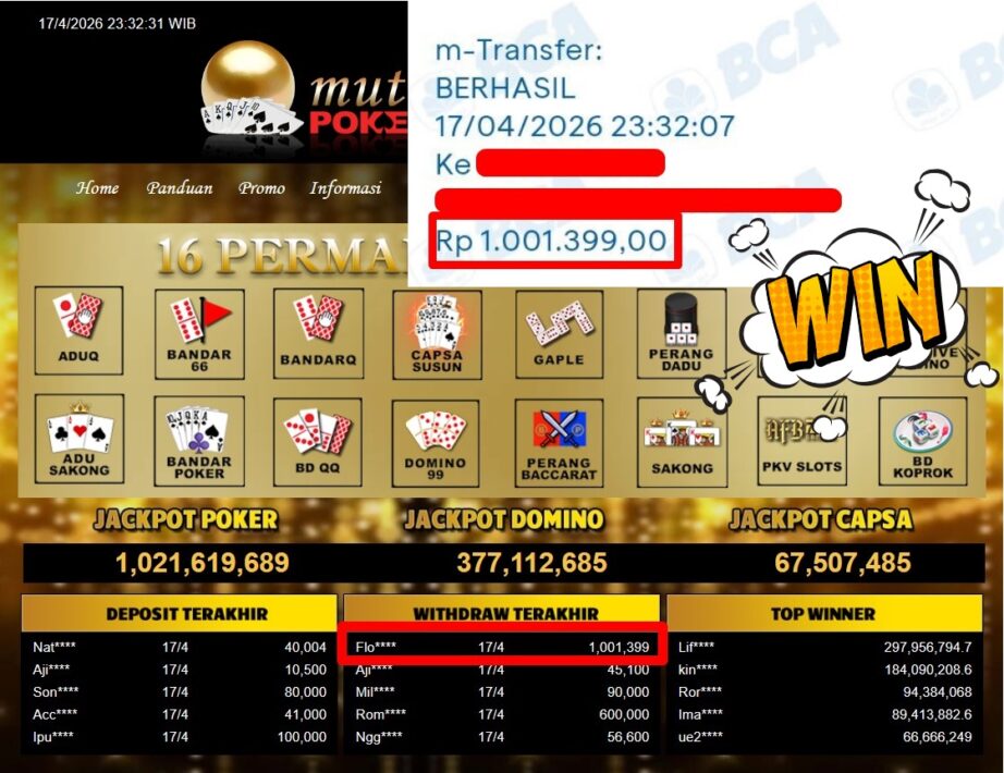 Bukti Withdraw ( 1.001.399,-) Member Setia Mutiarapoker
