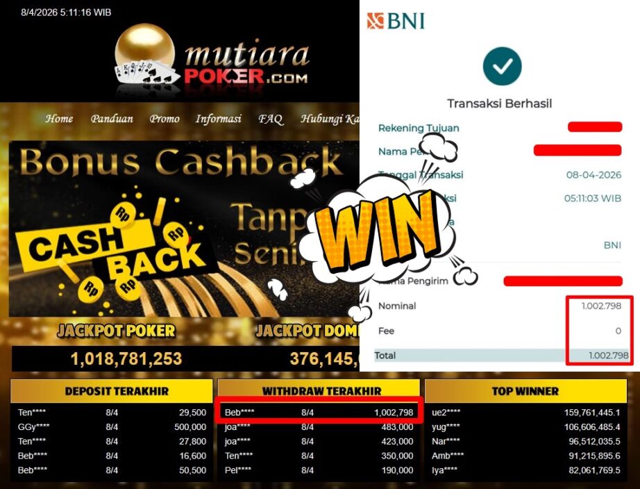 Bukti Withdraw MutiaraPoker