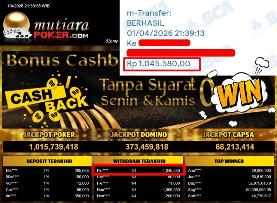 Bukti Withdraw ( 1.045.580,-) Member Setia Mutiarapoker
