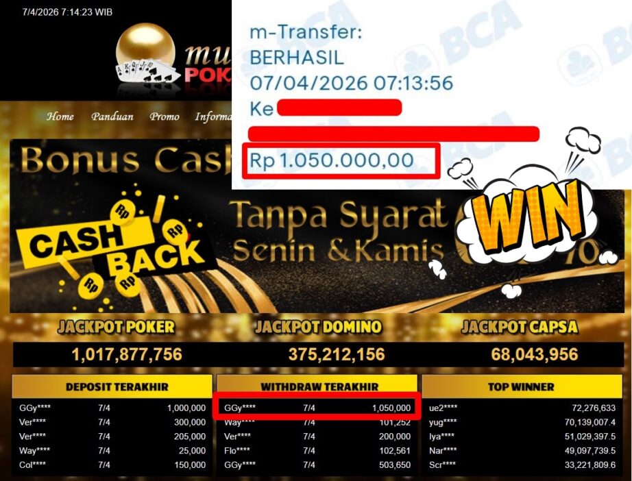 Bukti Withdraw MutiaraPoker
