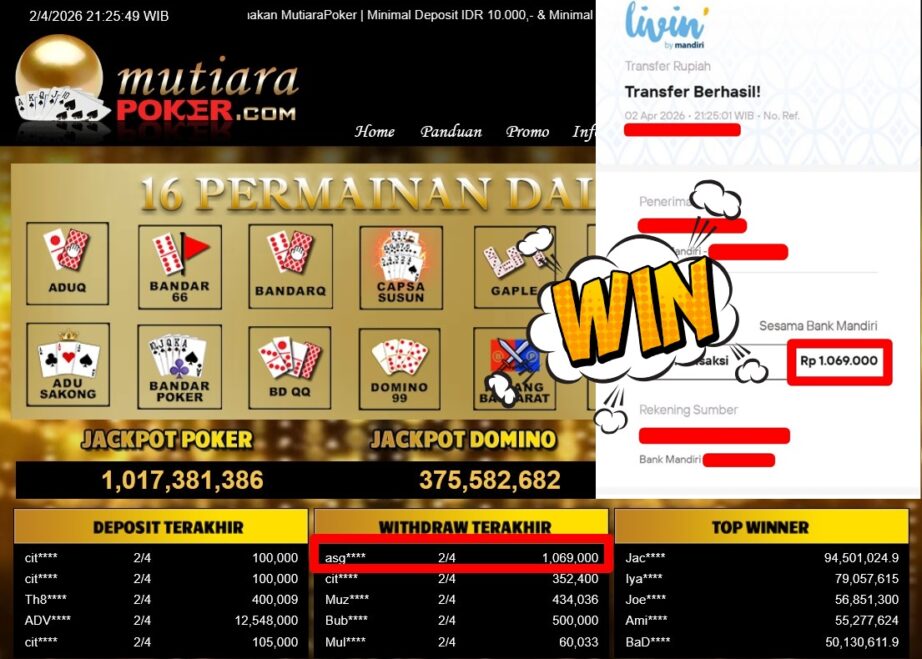Bukti Withdraw ( 1.069.000,-) Member Setia Mutiarapoker