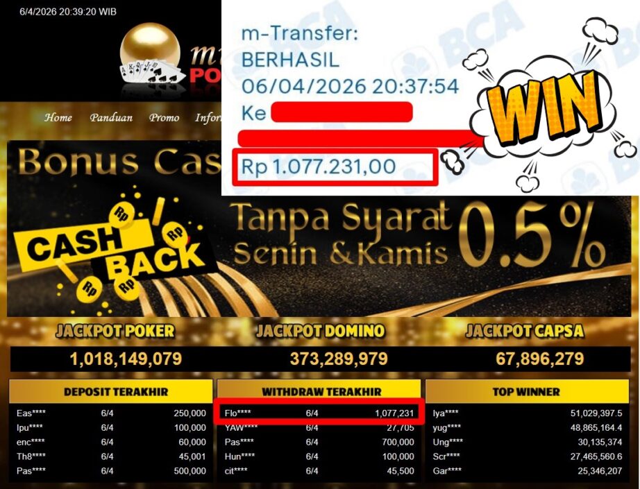 Bukti Withdraw ( 1.077.231,-) Member Setia MutiaraPoker