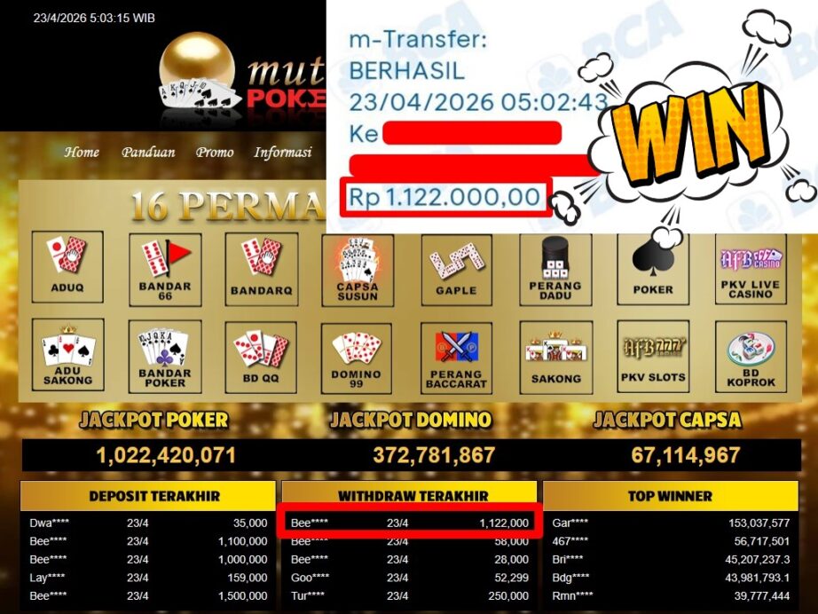 Bukti Withdraw MutiaraPoker
