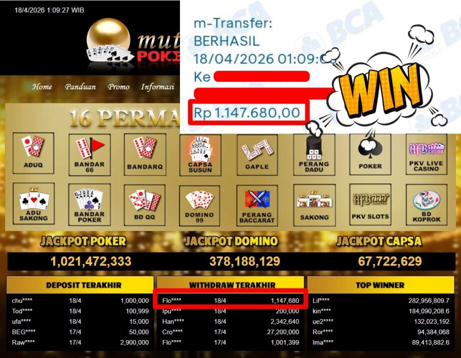 Bukti Withdraw ( 1.147.680,-) Member Setia Mutiarapoker