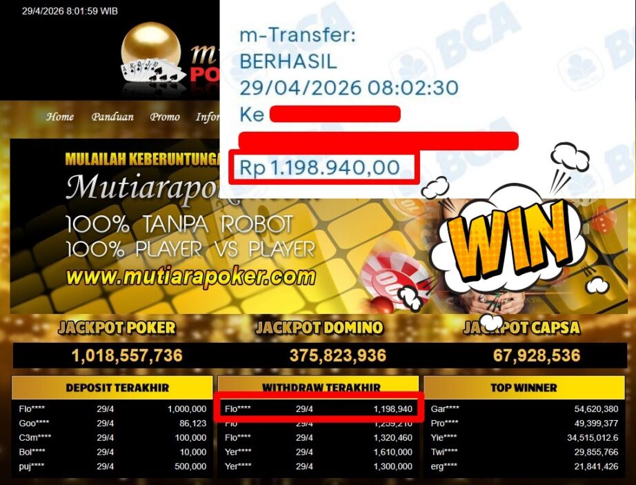 Bukti Withdraw MutiaraPoker