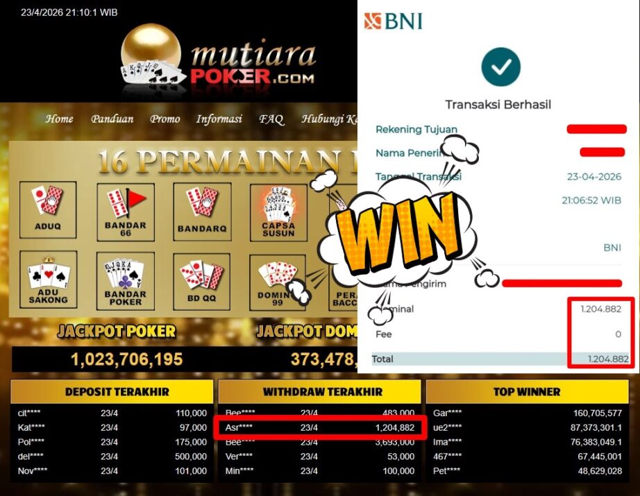 Bukti Withdraw MutiaraPoker