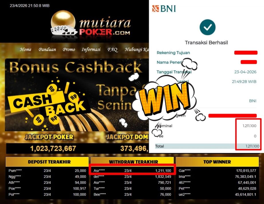 Bukti Withdraw ( 1.211.100,-) Member Setia Mutiarapoker
