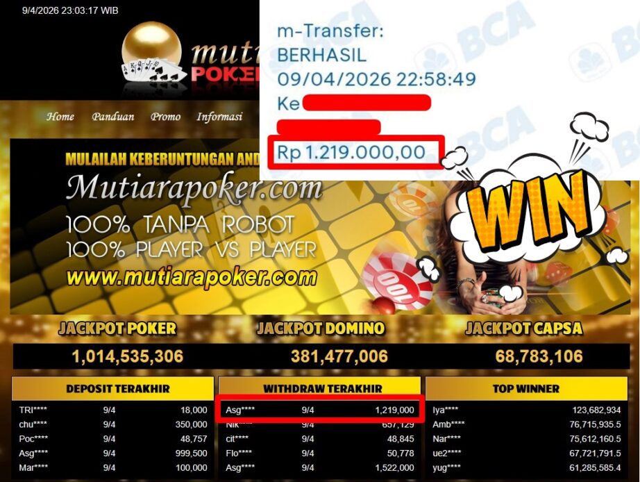 Bukti Withdraw ( 1.219.000,-) Member Setia Mutiarapoker
