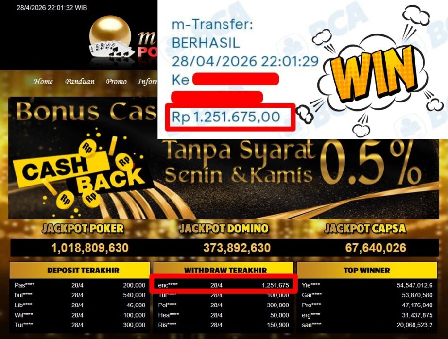 Bukti Withdraw ( 1.251.675,-) Member Setia MutiaraPoker