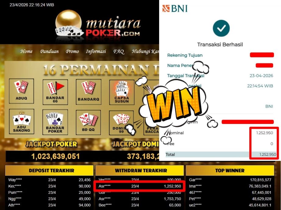 Bukti Withdraw MutiaraPoker