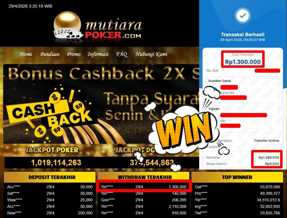Bukti Withdraw ( 1.300.000,-) Member Setia Mutiarapoker