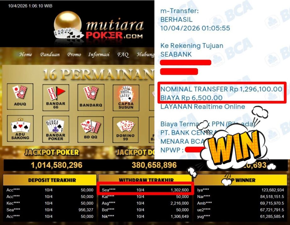 Bukti Withdraw ( 1.302.600,-) Member Setia Mutiarapoker