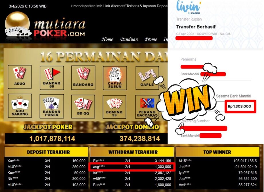 Bukti Withdraw ( 1.303.000,-) Member Setia Mutiarapoker