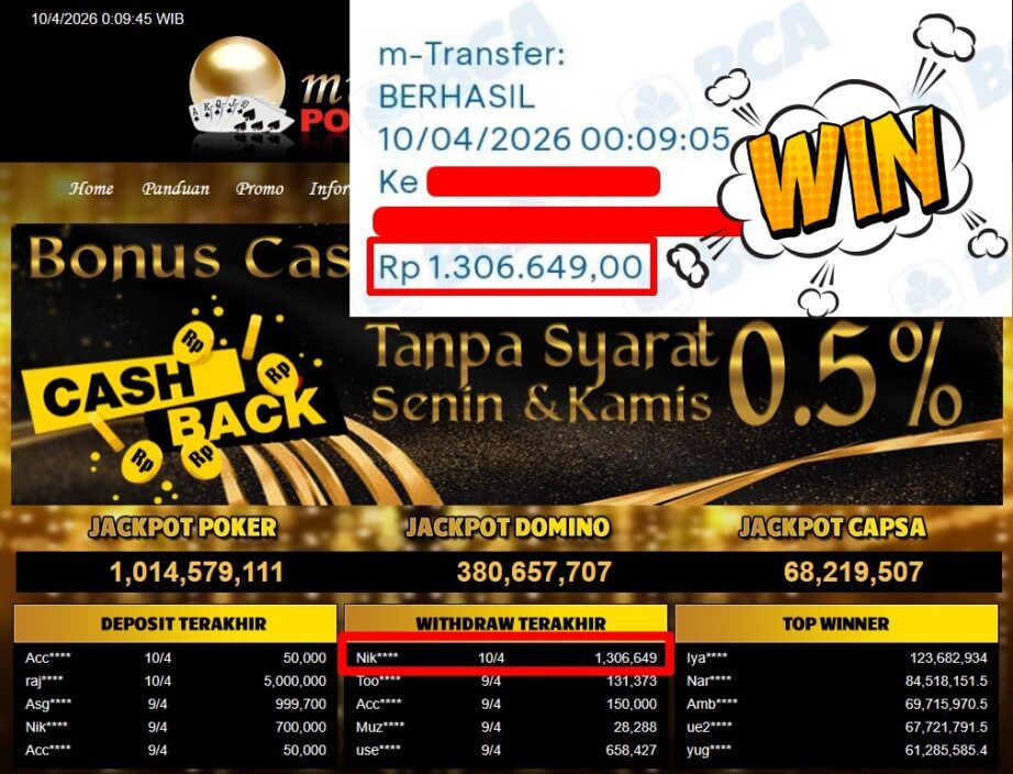 Bukti Withdraw MutiaraPoker