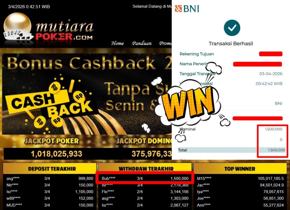 Bukti Withdraw MutiaraPoker