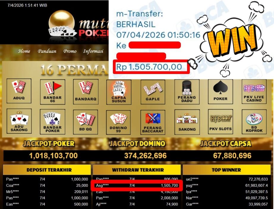 • Bukti Withdraw ( 1.505.700,-) Member Setia Mutiarapoker