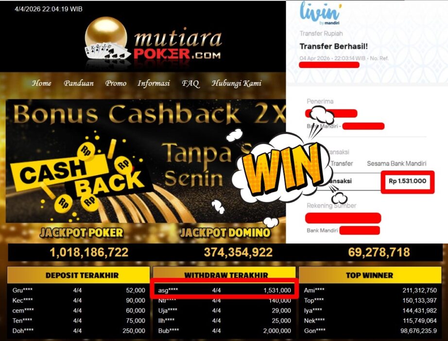 Bukti Withdraw MutiaraPoker