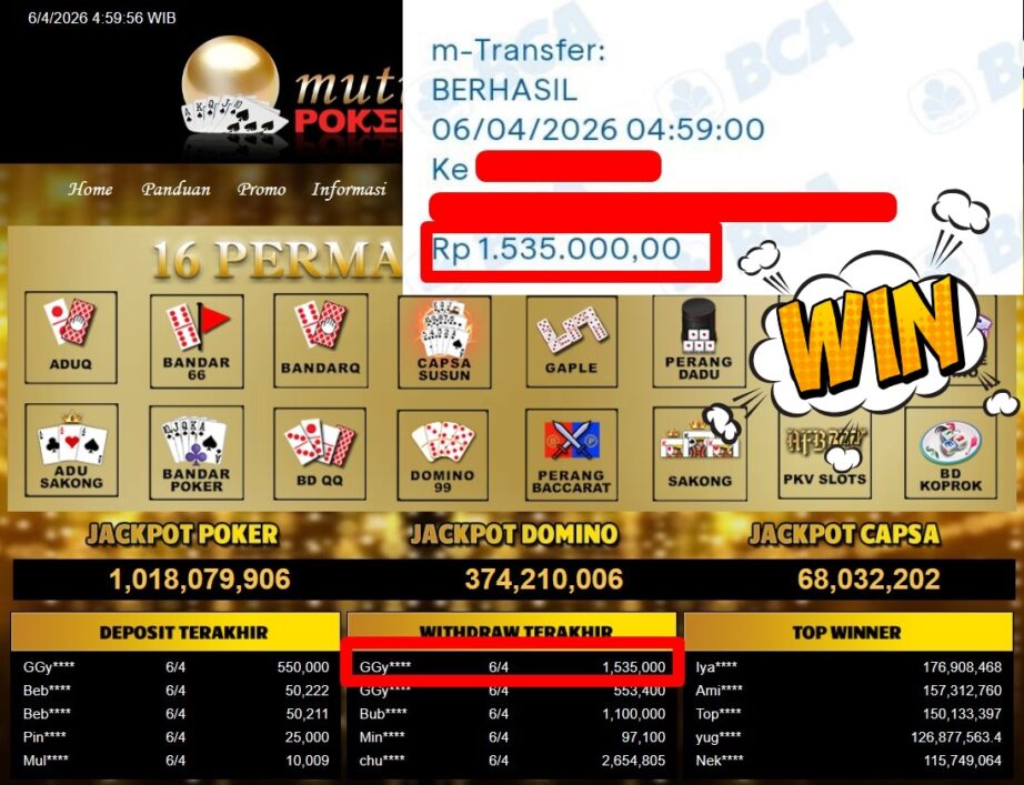 Bukti Withdraw ( 1.535.000,-) Member Setia Mutiarapoker