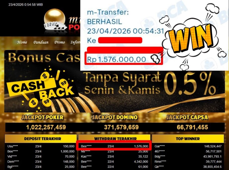 Bukti Withdraw ( 1.576.000,-) Member Setia Mutiarapoker