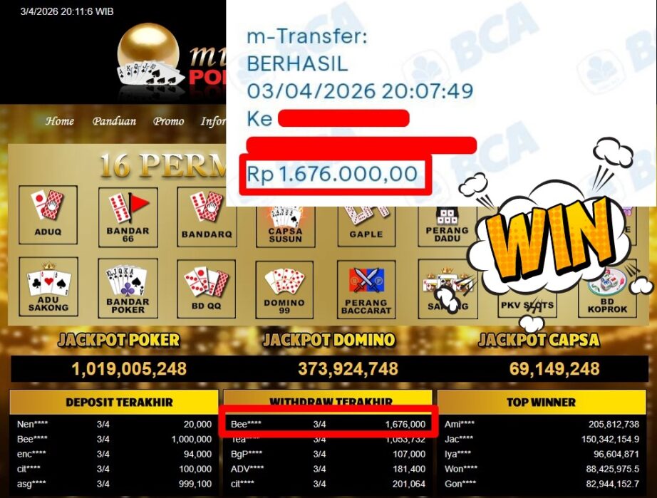 Bukti Withdraw ( 1.676.000,-) Member Setia Mutiarapoker