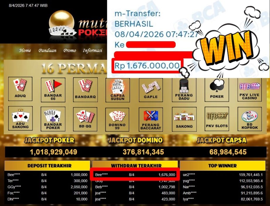 Bukti Withdraw ( 1.676.000,-) Member Setia Mutiarapoker