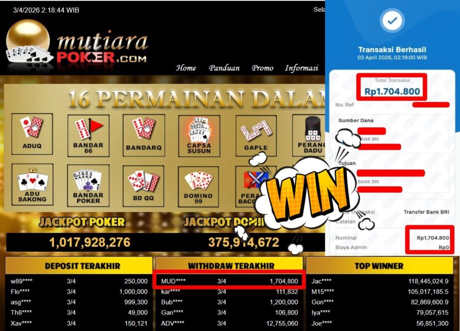 Bukti Withdraw MutiaraPoker