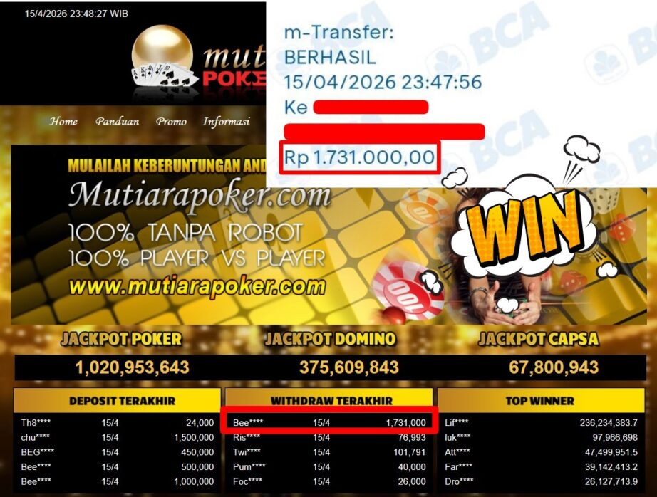 Bukti Withdraw MutiaraPoker