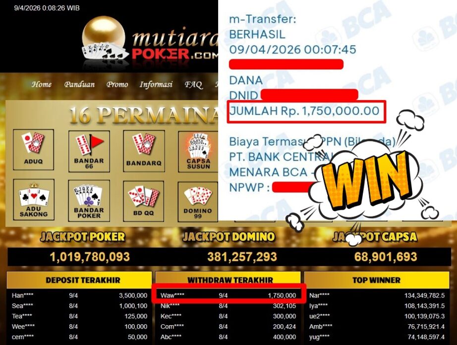 Bukti Withdraw ( 1.750.000,-) Member Setia Mutiarapoker