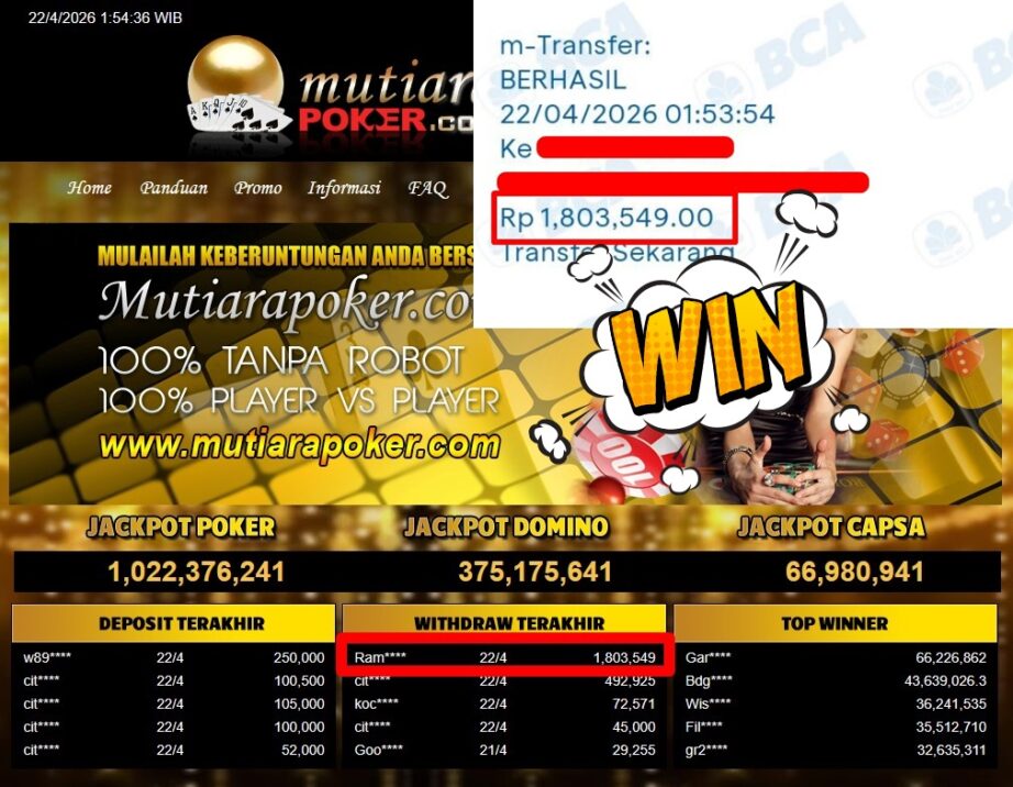 Bukti Withdraw ( 1.803.549,-) Member Setia MutiaraPoker