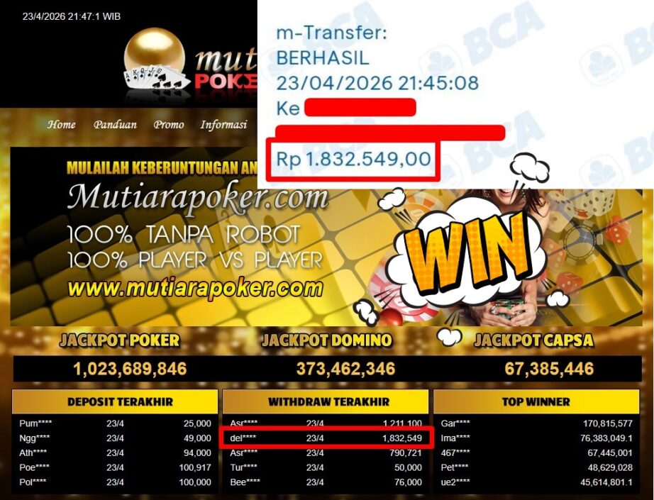 Bukti Withdraw MutiaraPoker
