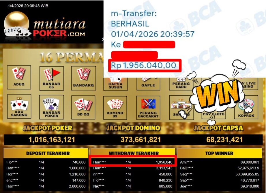 Bukti Withdraw MutiaraPoker