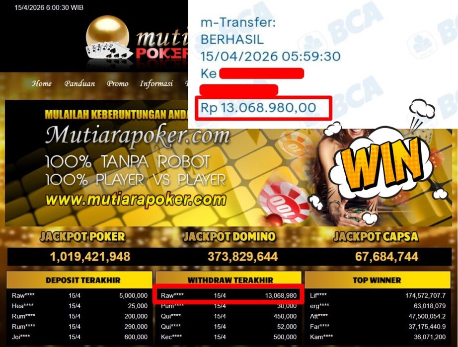 Bukti Withdraw ( 13.068.980,-) Member Setia Mutiarapoker