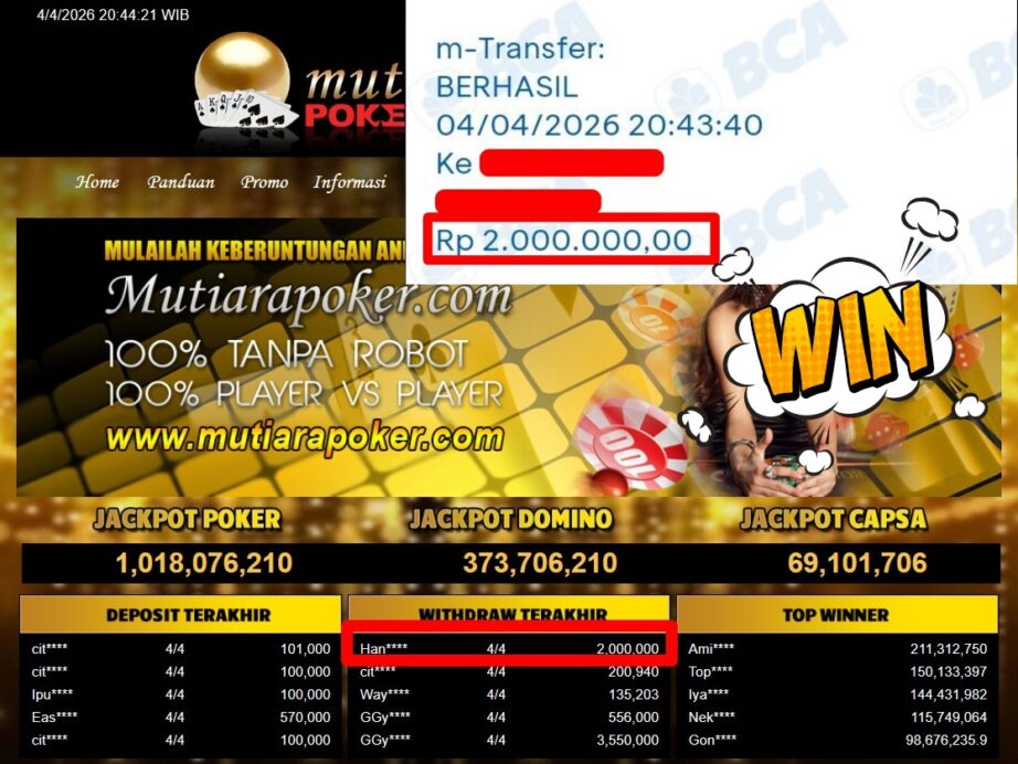 Bukti Withdraw ( 2.000.000,-) Member Setia Mutiarapoker
