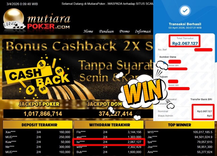 Bukti Withdraw MutiaraPoker