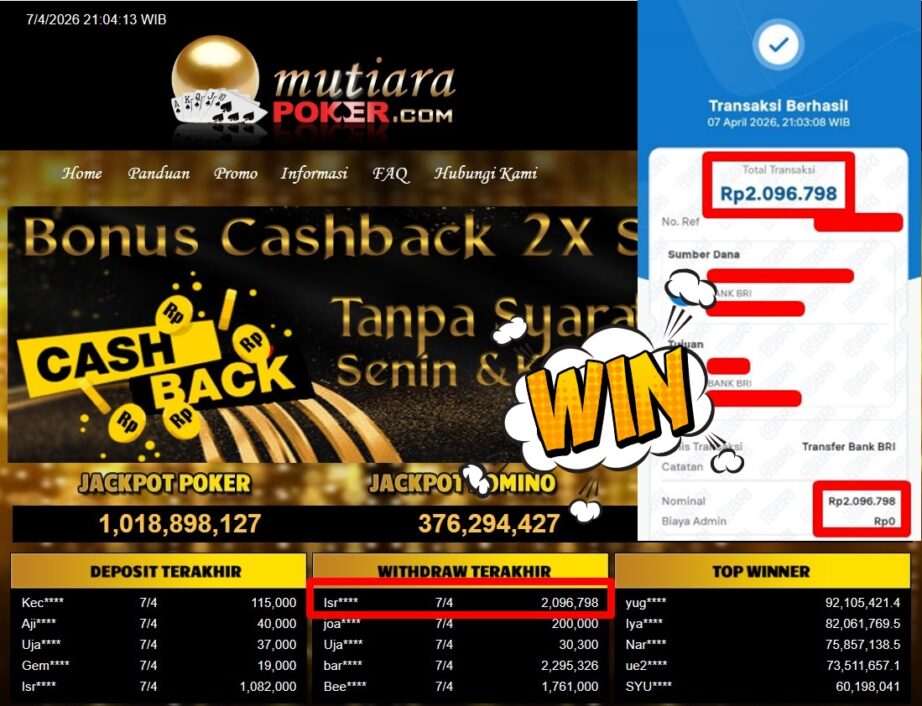 Bukti Withdraw ( 2.096.798,-) Member Setia Mutiarapoker