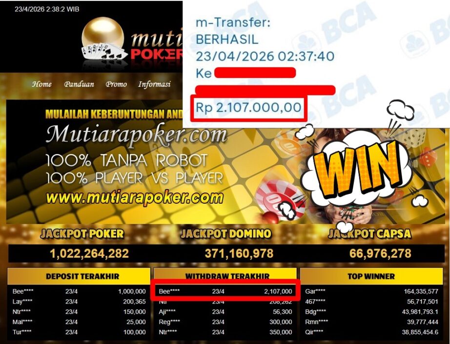 Bukti Withdraw MutiaraPoker