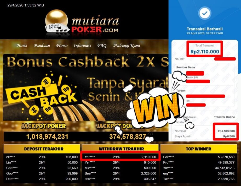 Bukti Withdraw ( 2.110.000,-) Member Setia Mutiarapoker