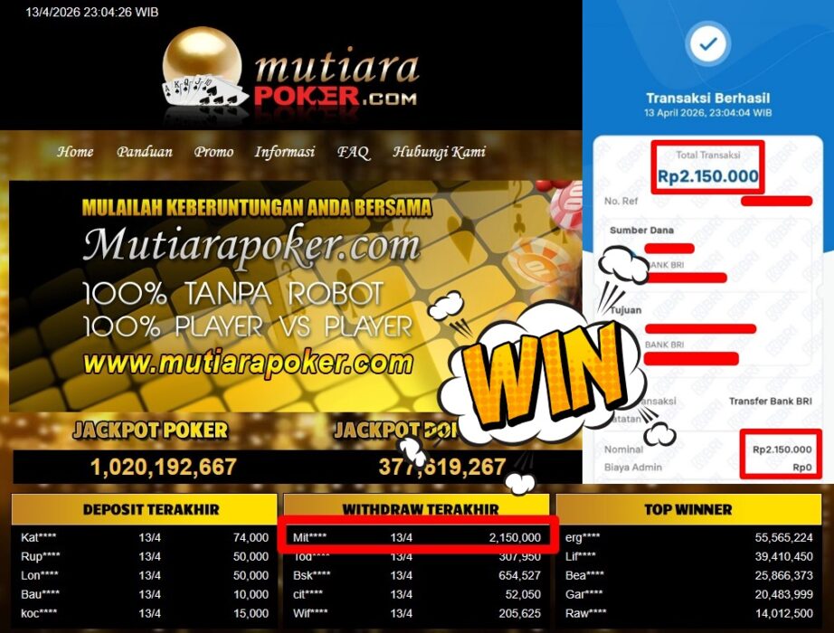 Bukti Withdraw ( 2.150.000,-) Member Setia Mutiarapoker