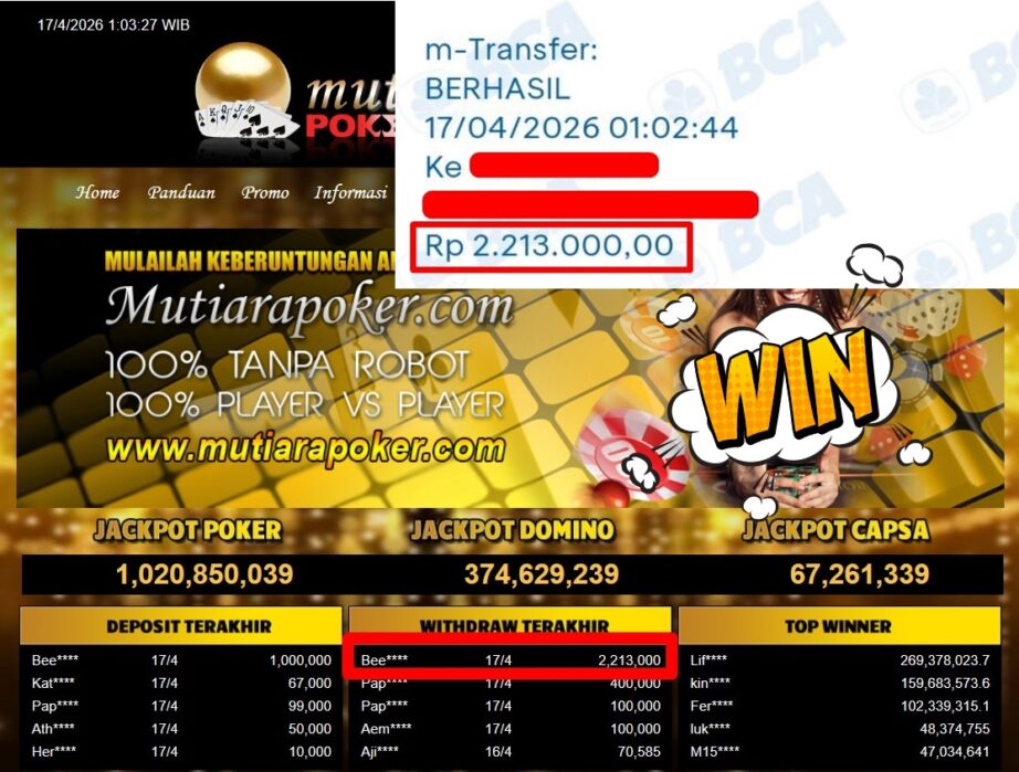 Bukti Withdraw MutiaraPoker