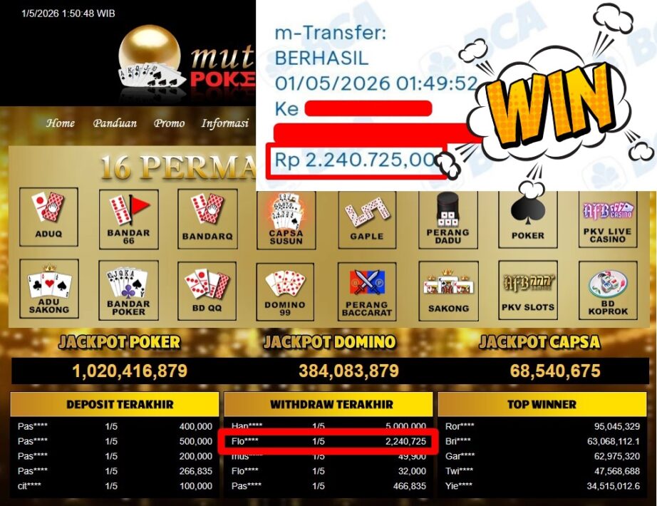 Bukti Withdraw MutiaraPoker