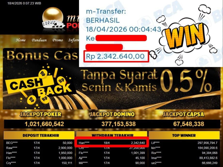 Bukti Withdraw MutiaraPoker