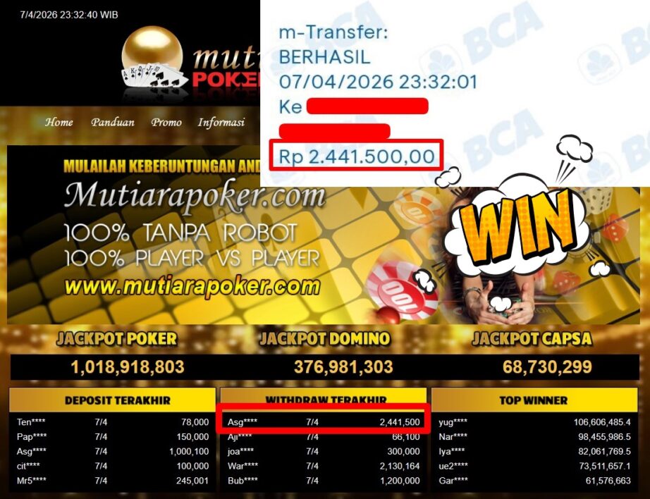 Bukti Withdraw ( 2.441.500,-) Member Setia Mutiarapoker