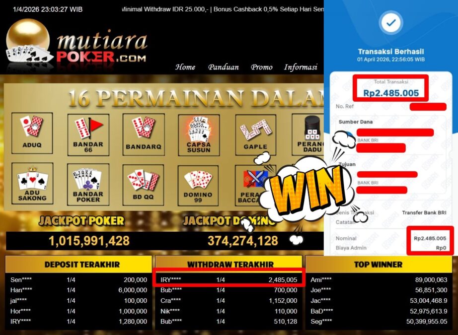 Bukti Withdraw ( 2.485.005,-) Member Setia Mutiarapoker